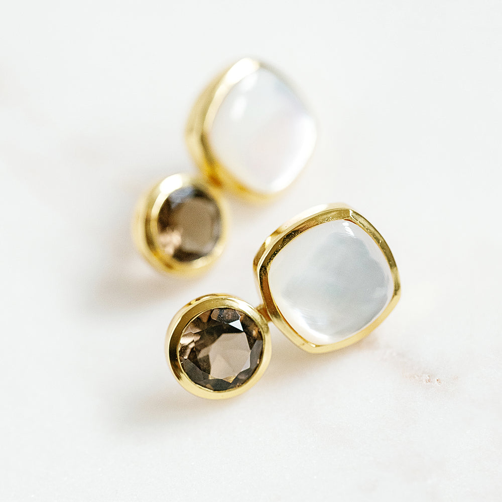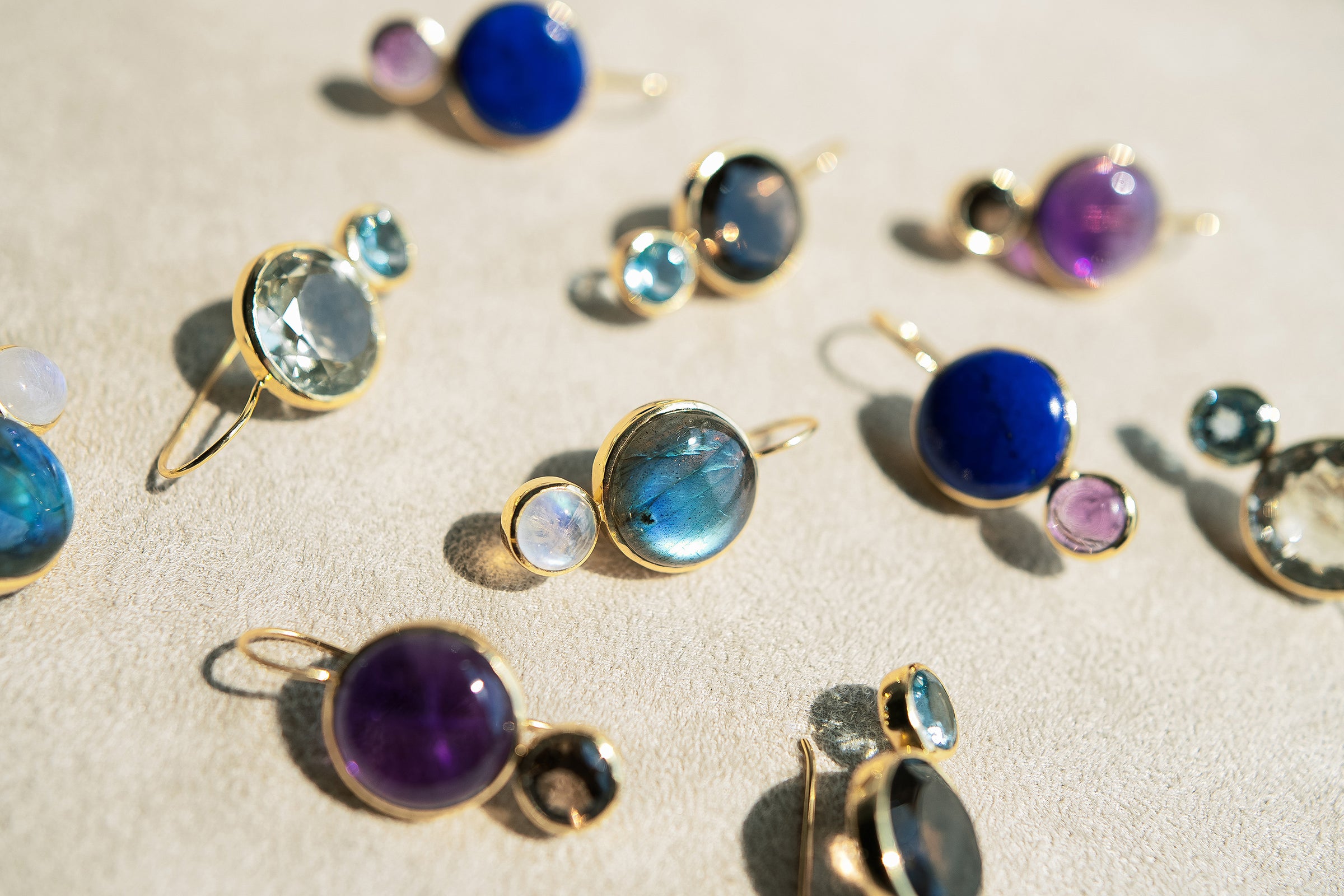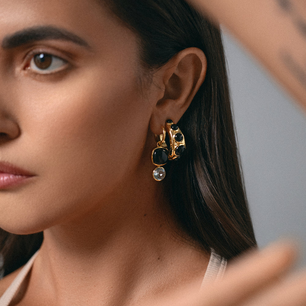 Inspired by the joyful art of color mixing, these drop earrings feature genuine semi-precious gemstones, expertly crafted to bring a playful yet sophisticated touch to your jewelry collection.