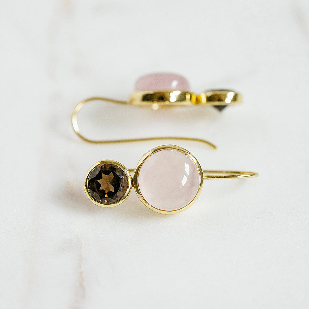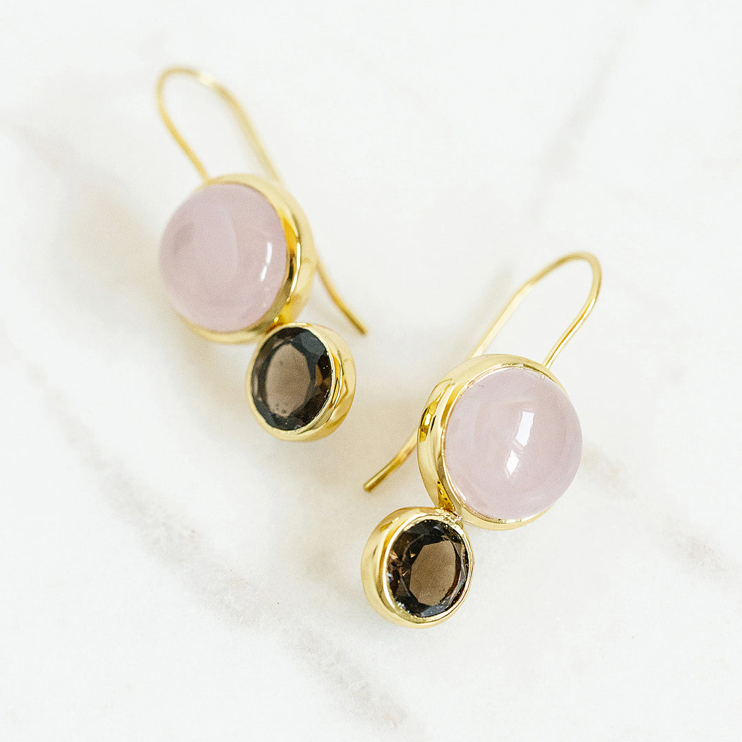 Featuring a playful combination of soft blush pastel tones and semi-precious gemstones, these dainty earrings are designed with a more compact silhouette, making them ideal for everyday wear or special occasions.