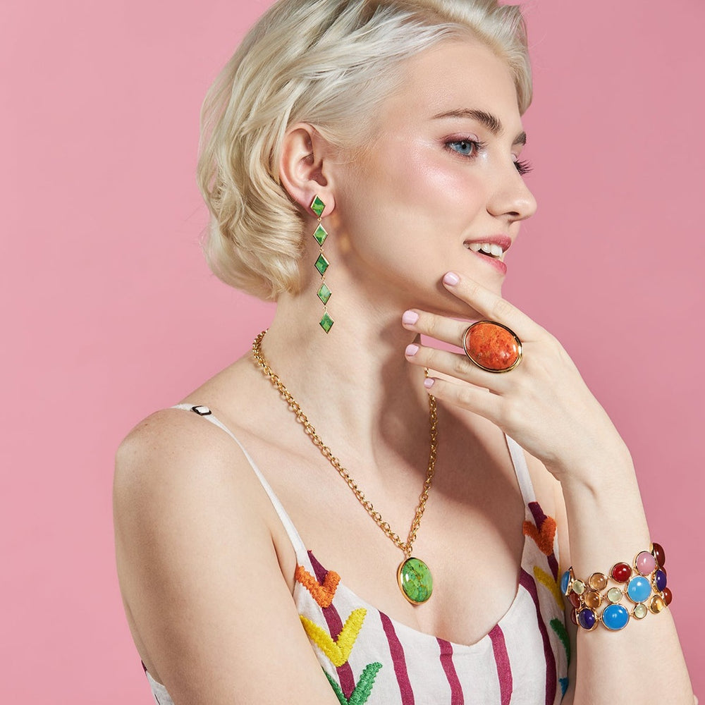 Our jewelry is intentionally bold and playful. It's infused with pops of color and unexpected detail to surpise and delight.