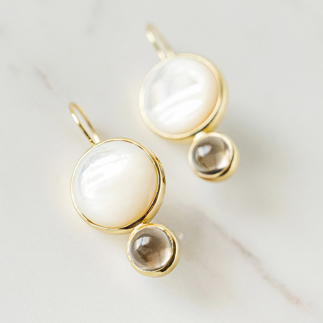 Color Block Drop Earrings in Mother of Pearl and Smoky Topaz