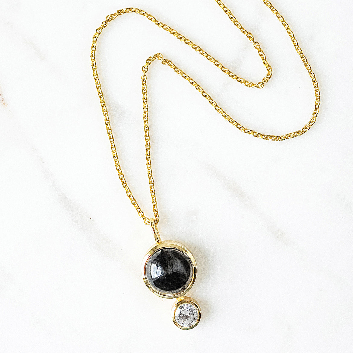 Meet the Tini Mini Pendant Necklace in Black Onyx — a delicate balance of modern minimalism and timeless elegance. Featuring striking black onyx paired with a sparkling bezel-set cubic zirconia, this lightweight pendant adds just the right amount of shine whether worn solo or layered. Effortless, chic, and designed for everyday wear. ✨